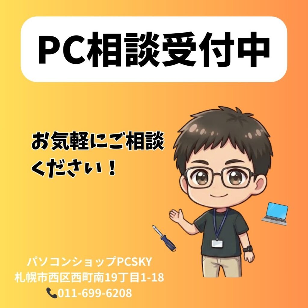 札幌市西区、地下鉄宮の沢駅徒歩5分のパソコンショップ「PCSHOP PCSKY(ピーシースカイ)」です。